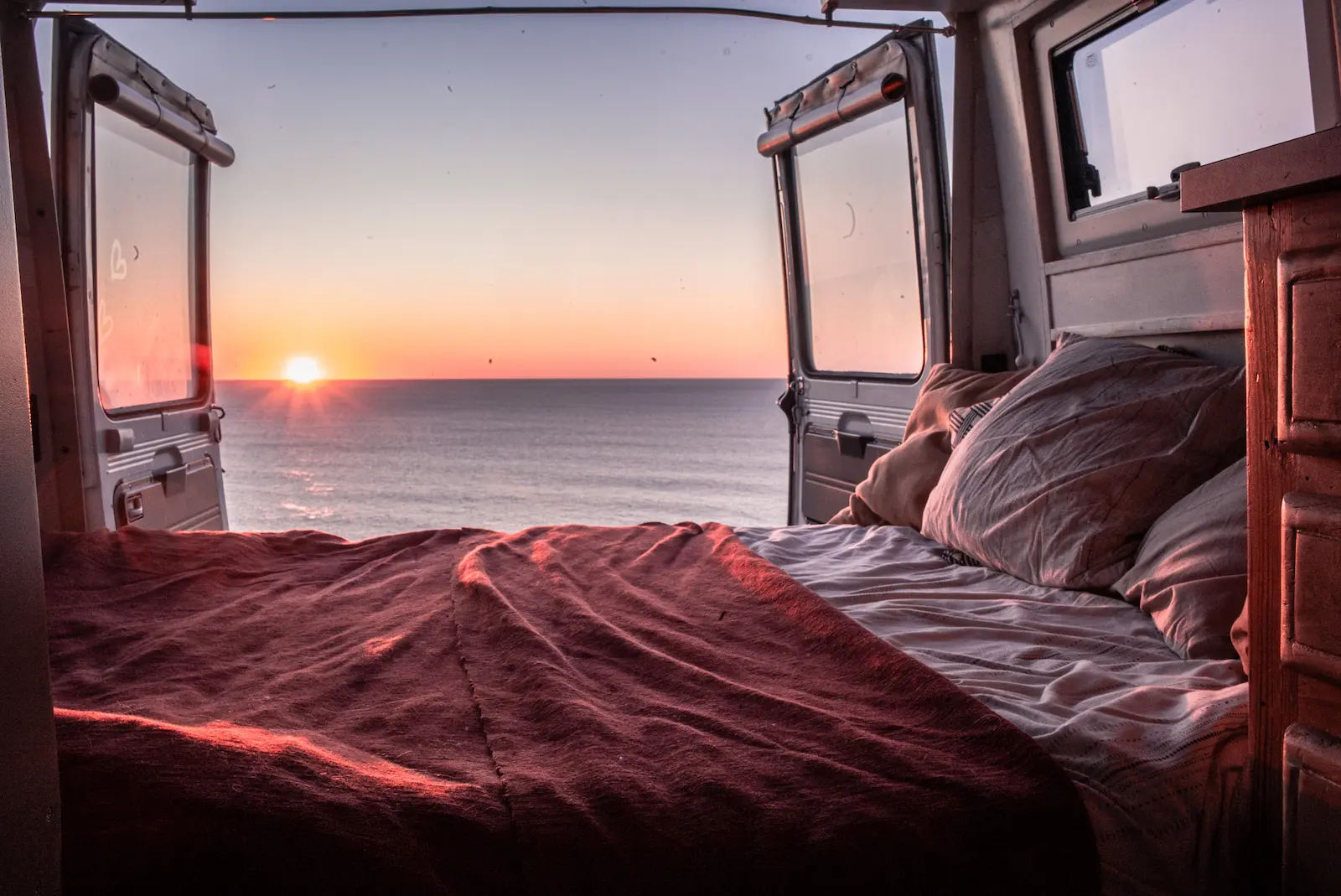 Slaap als een baby op een queensize bed met een donsdeken en comfortabele kussens. Elk busje is goed geïsoleerd. Door de grote vensters aan je bed heb je altijd zicht op ‘den buiten’.